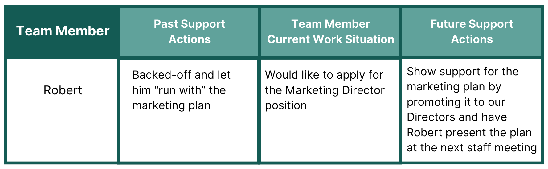 3. Additional actions you must take in the future to improve the support you provide each team member