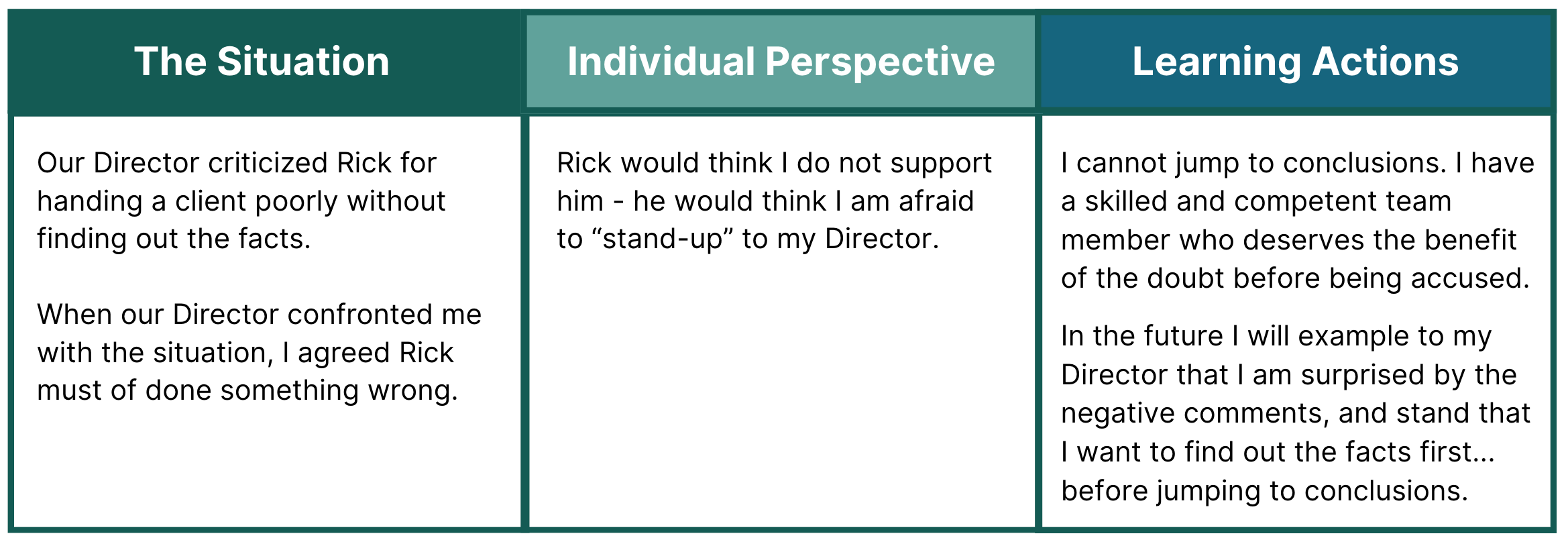 - Based on the circumstances and your view of the employee’s perspective, what would you do differently in the future?