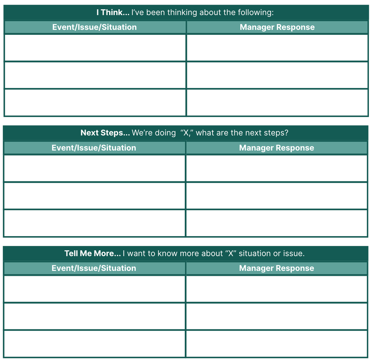 - Tell Me More...I want to know more about “X” situation or issue.