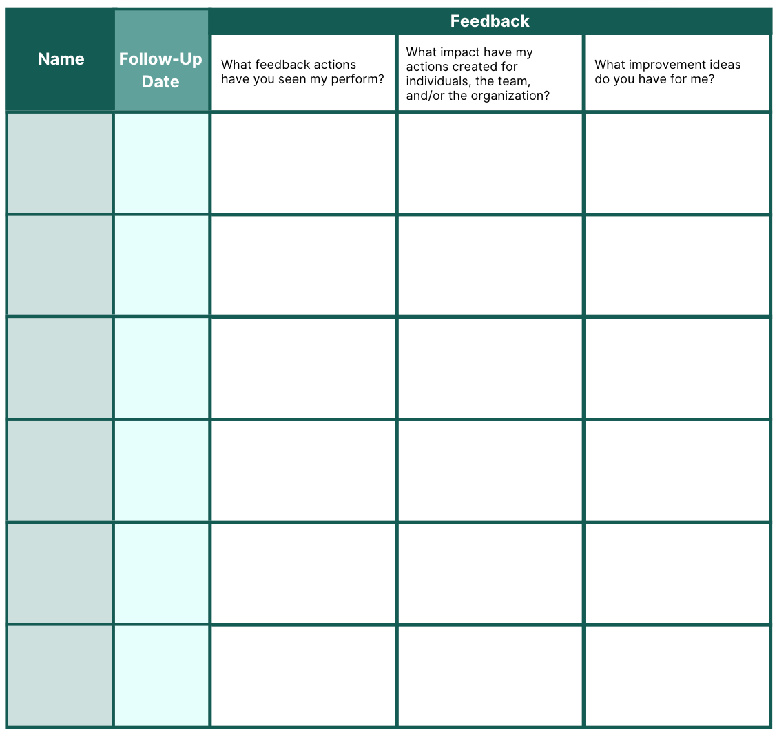 STEP 3: At the time of your follow-up dates, schedule a 15 minute discussion with each person to receive feedback on your feedback actions.
