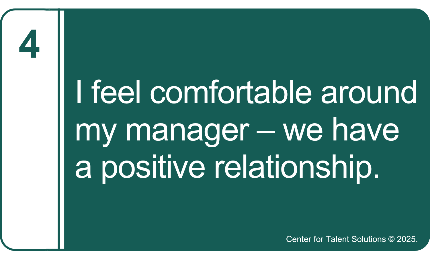STEP 3: Have the team member share their 2 manager actions. For each action, focus on understanding why it is most critical and how it’s really going. Understand that the action requiring more energy will allow you to realize that increasing the actions you take around the manager action will make a positive impact on engaging and retaining the team member.