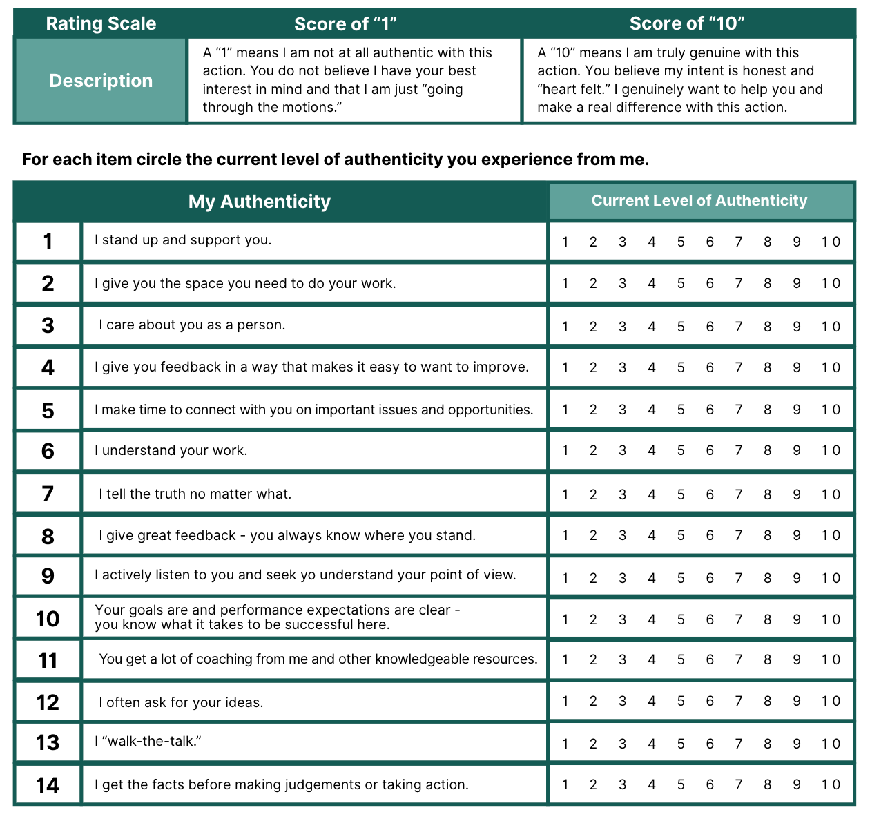 STEP 3: Ask the team to spend a few minutes and evaluate your authenticity on the actions listed on the Authentic Assessment Form.