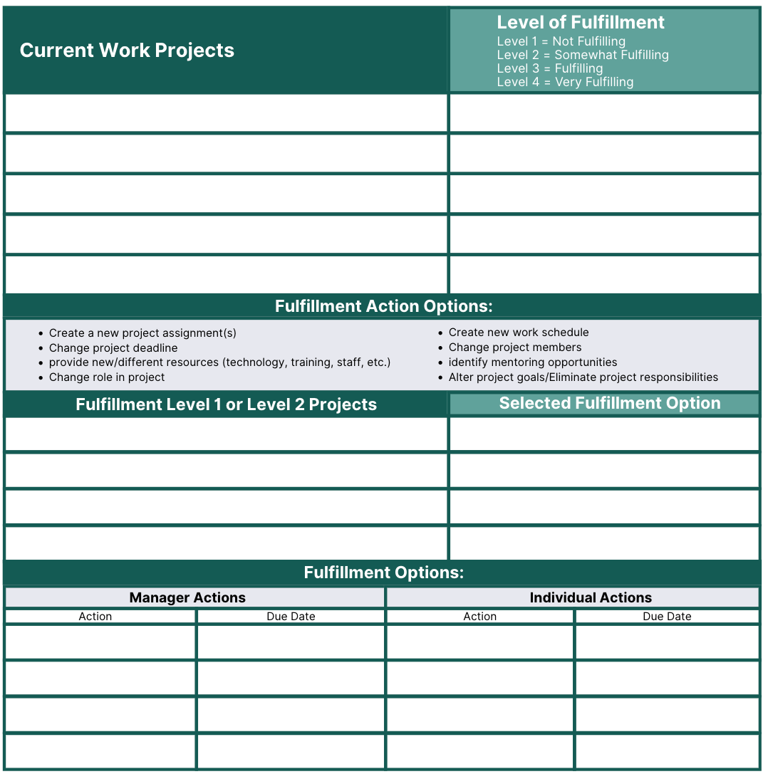 STEP 3: Circle any project or group of tasks rated a Level 1 or Level 2. Select a Fulfillment Option you and your manager can implement to increase purpose.