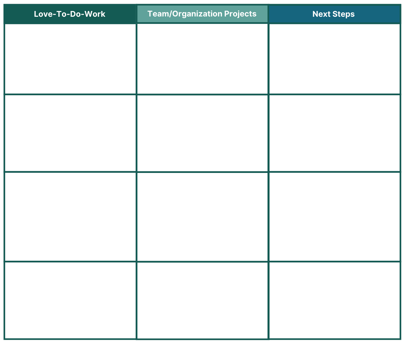STEP 2: With your employee, discuss each “love-to-do” work action and identify the current projects, initiatives, and/or responsibilities within the team or organization that would tap into the “love-to-do” work action.