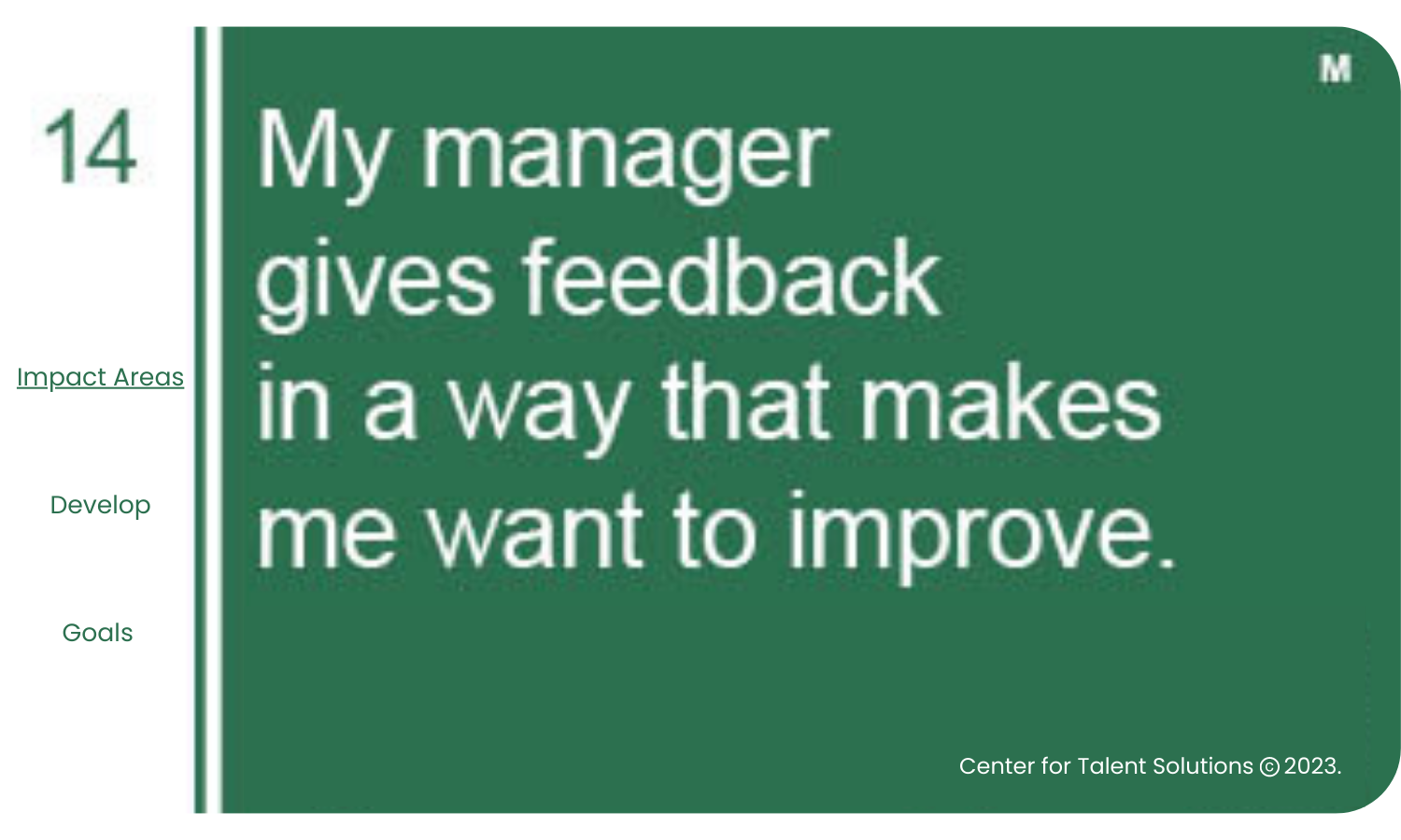 It is critical you receive the feedback you need to achieve success in your role. Please take a moment to think about your current projects and deliverables. Based on what you have to achieve, what is the #1 area you would like immediate feedback on?