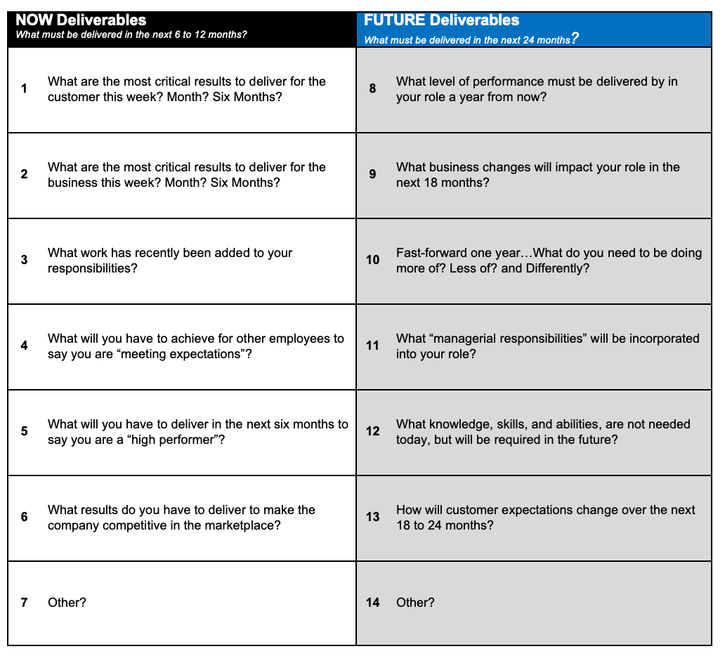 STEP 3: After completing the Deliverable Map, meet with your manager to: