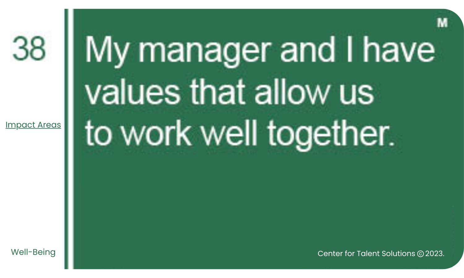 • Think about what is “most critical” to engaging you to perform at your highest levels and/or creates a work situation where you want to stay.