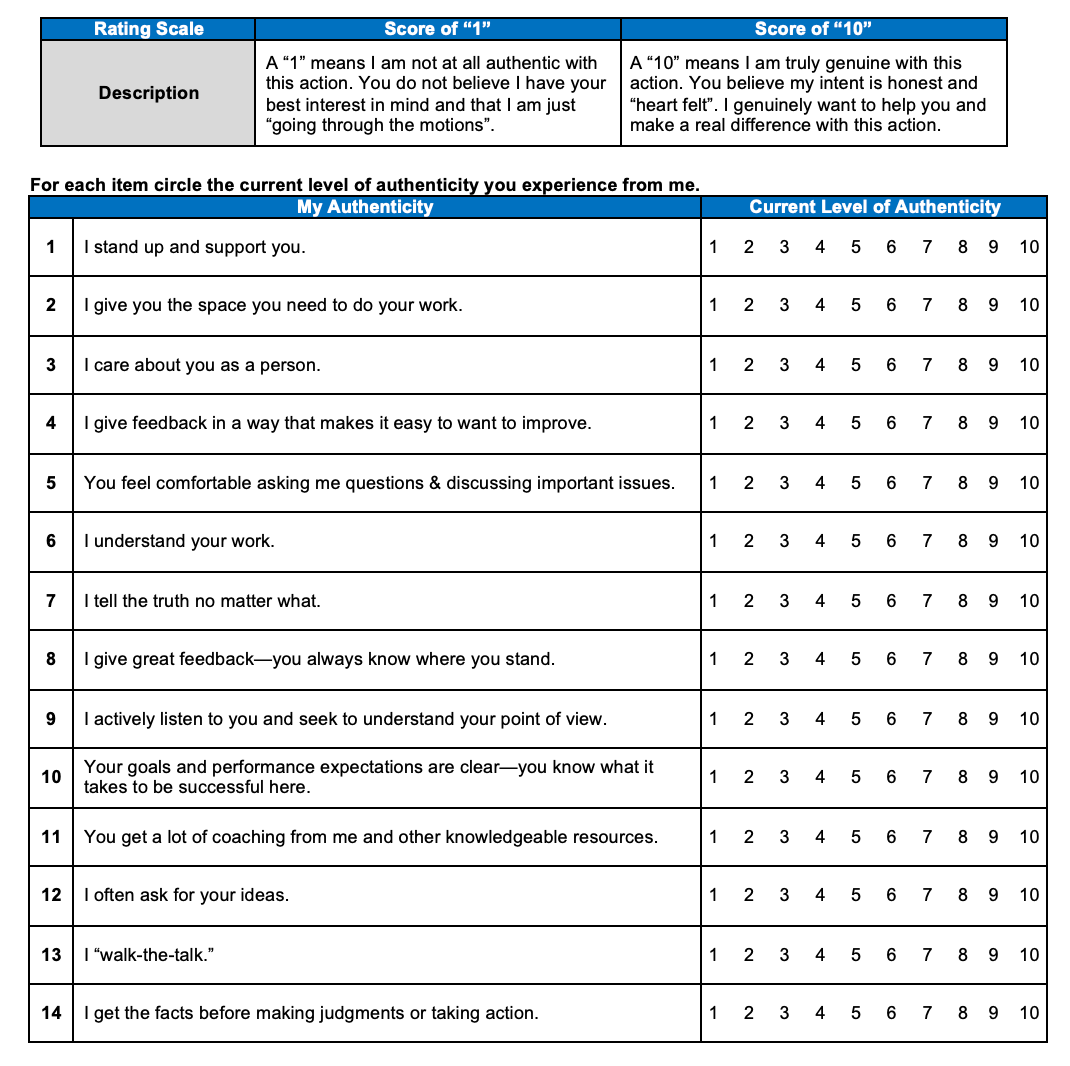 STEP 2: Share with your team your desire to receive honest feedback regarding how authentic your actions are with each team member.